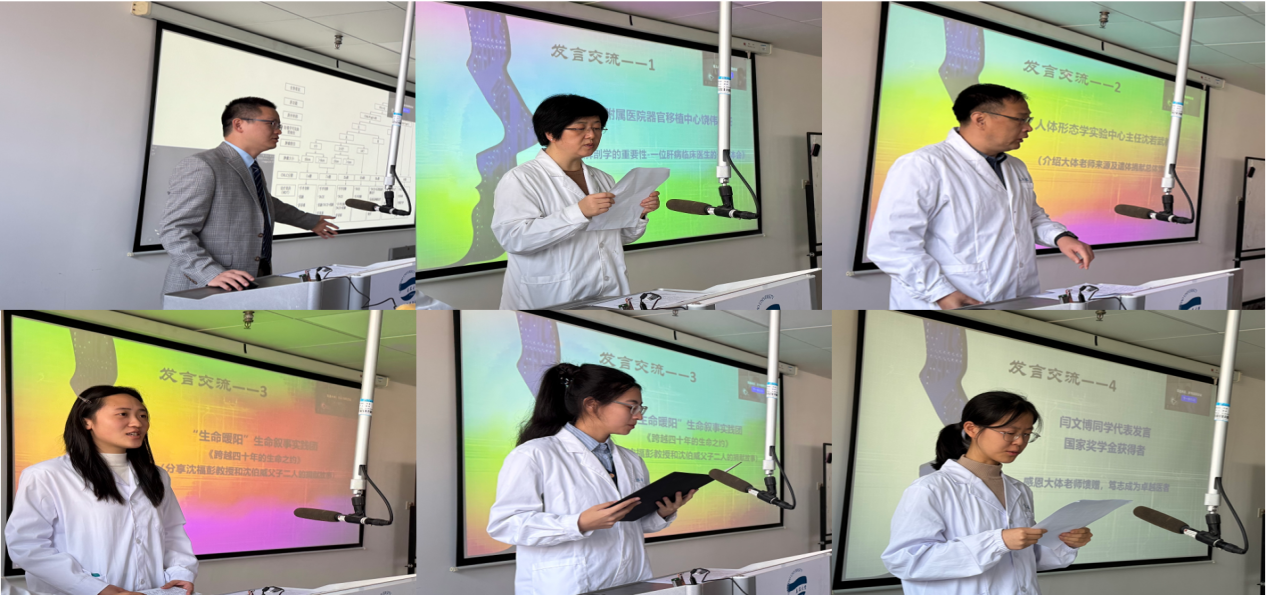 “生命暖阳”生命叙事实践团盛鹏圆和张泽彧同学讲述了一个“跨越四十年的生命之约”的故事。她们分享了沈福彭教授和沈伯威父子二人的感人事迹。沈福彭教授是中国首位自愿捐献遗体制成骨架标本的医学教育家。2025年,沈伯威在生命末期选择将遗体捐献给做爱自拍