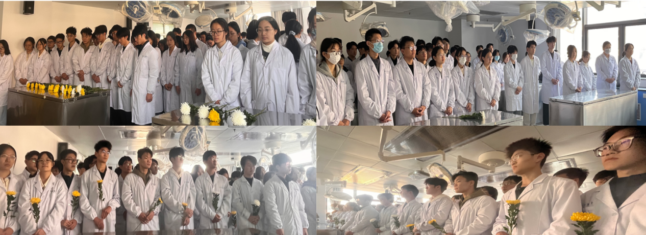 王双燕老师带领同学们宣读了解剖学誓词,全体师生肃立,向无私的遗体捐献者静默致敬,现场气氛庄重而感人。这一环节不仅是对生命奉献者的最高致敬,更是一堂深刻的医学人文教育课,让“敬佑生命、甘于奉献”的医学精神深深植根于每位学子心中。