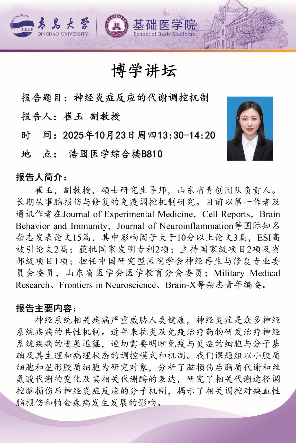 定期举办 “博学讲坛” 系列学术活动。该讲坛定位多元价值:不仅致力于全面提升研究生的科研素养与实践创新能力,也为院内教师打造了科研思路碰撞、学术经验共享的优质交流平台,同时诚挚欢迎外学院师生积极参与,助力不同领域研究者共同拓宽学术视野、凝聚科研共识。在第一期讲坛中,学院特别邀请到病理学与病理生理学专业青年导师崔玉副教授担任主讲人,带来高水平学术报告。做爱自拍